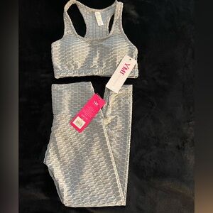 NWT YMI 2-Piece Honeycomb Activewear Set. Size Medium. Gray