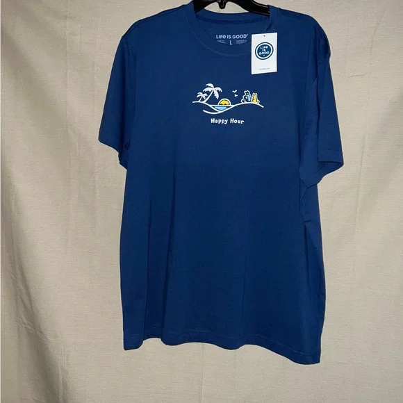 Life is Good T-Shirt. In blue. graphics on front. Short sleeves. Crew neck.