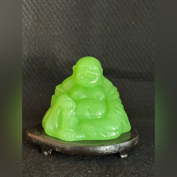 2.5” glass Happy Buddha with stand; vintage