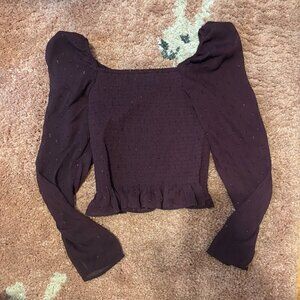 NWT $68 EXPRESS Smocked Top Sheer Burgundy Puff Sleeves w/ Shoulder Pads Sz XS