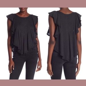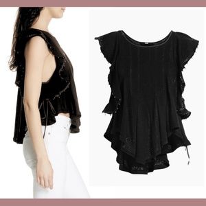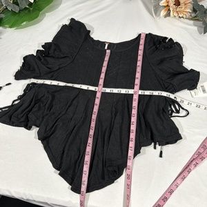 NWT $68 Free People [ XS ] Tiny Bells Linen Blend Ruffled Crop Top Black
