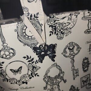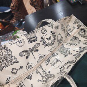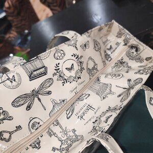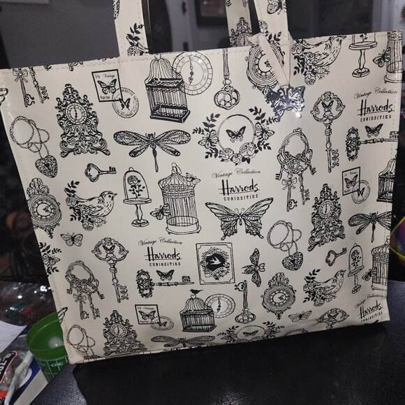 New with Tags Harrods Vintage Collection "Curiosities" tote bag with a black print.