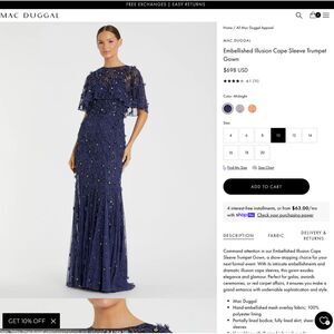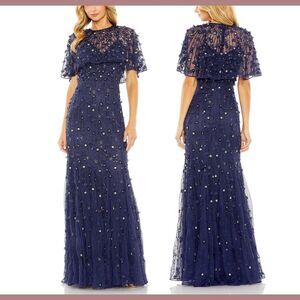 NWT $698 Mac Duggal [ 10 ] 93653 Embellished Cape Sleeve Trumpet Gown Blue Q1002