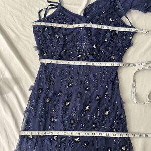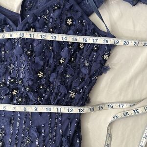 * Hand-embellished Mesh Overlay Fabric; 100% polyester lining