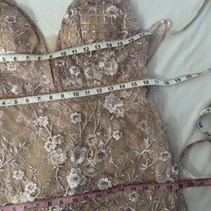 NWT $698 Mac Duggal [ 10 ] Floral Embellished Sleeveless Plunge Neck Gown Rose