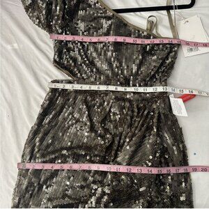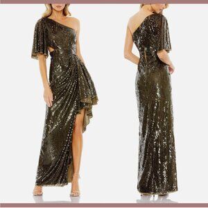 NWT $698 Mac Duggal [ 2 ] Sequined Flutter Sleeve One Shoulder Draped Gown Q750