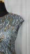 Platinum gray gown with silver and gold hand-beaded embellishments. Illusion high neckline, cap sleeves, beaded waist. Elegant column silhouette. Black tie ready.