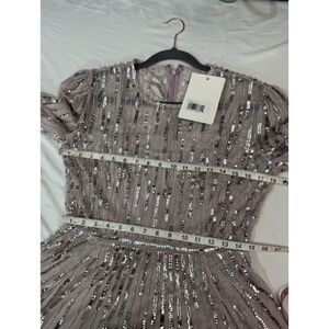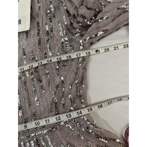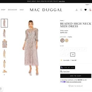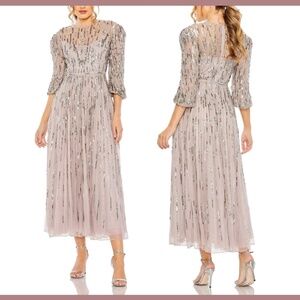 NWT $698 Mac Duggal [ 8 ] Beaded High Neck Midi Dress in Heather