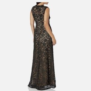 Chic black lace maxi dress by Tadashi Shoji. Ideal for formal events. Exudes elegance and style.