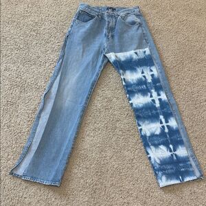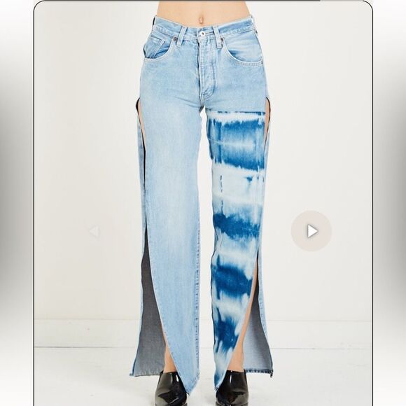 THE SPLIT ARROW JEANS IN OCEAN SHIBORI BY LEVI'S: MADE & CRAFTED IS STYLE WITH A THIGH SPLIT, BUTTON FLY, AND 5-POCKET DESIGN.