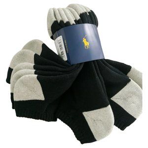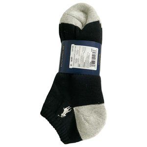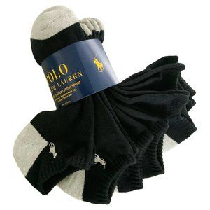 NWT 6-PAIRS PACK POLO RALPH LAUREN MENS BLACK NO SHOW SOCKS 6-12