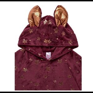 sweet warm hoodie hood hooded top BURGUNDY PURPLE COLOR kangaroo 3d ears on these jammies design - top hood has shiny accent
