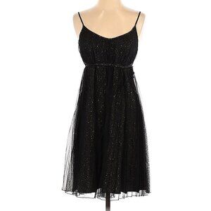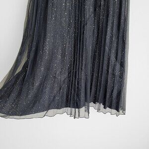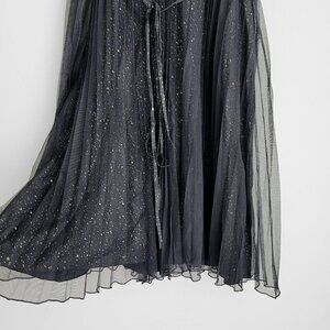 7 For All Mankind Black Silk Pleated Gold Shimmer Tulle Cocktail Party Dress