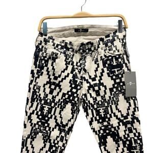 NWT 7 For All Mankind Black and Cream Ethnic Geo Print Pants size 29