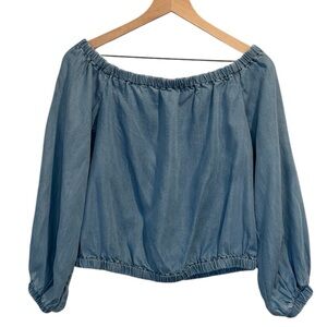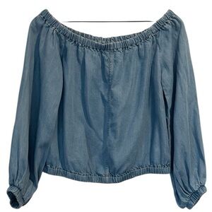 NWT 7 For All Mankind Chambray/Denim Off-Shoulder Women's Top, Long Sleeve, XS