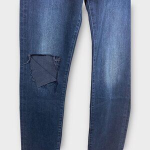NWT 7 For All Mankind Easy Slim Dark Distressed with Open Knee Jeans, Size 28