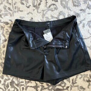 NWT 7 For All Mankind Faux Leather Pleated Shorts Black L