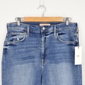 NWT 7 For All Mankind Luxe Vintage Raw Hem Denim Short Medium Wash Blue Size 32