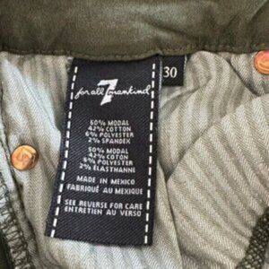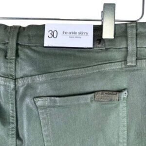NWT 7 For All Mankind | Olive Green Stretchy Super Skinny Waxy Feel Jean Size 30