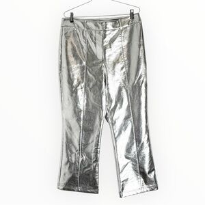 NWT 7 For All Mankind Silver Foil Vegan Leather Straight Leg Pants size L