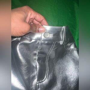 Shine in style with this metallic silver pencil skirt. Perfect for any occasion, this skirt adds a touch of elegance to your wardrobe.