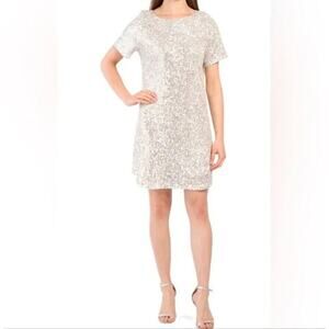 NWT 7 For All Mankind Silver Sequin Short Sleeve Mini Shift Dress Size XS