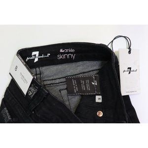 NWT 7 For All Mankind The Ankle Skinny Jeans Embroidered Chewed Hem Vintage Noir