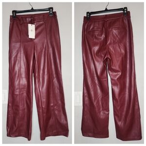 NWT 7 For All Mankind Vegan Leather Red Wideleg Pants Front Seam Small Stretch