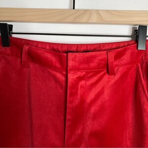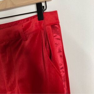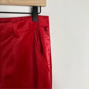 New 7 for all mankind red pants. Size 8. Red velour with satin stripe on the sides. High waisted. Hook and button closure. Pockets.