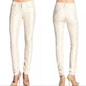 NWT 7 For All Mankind White/Gold Snake Print Skinny Jeans Size 25