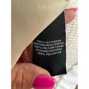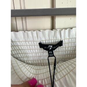 New with tags 7 For All Mankind size XS faux leather mini dress In A light light beige color. Measures 12 1/2” from armpit to armpit when not stretched at all and can stretch to 19”. Waist is 11-18” and it is 32” from shoulder to bottom hem.