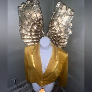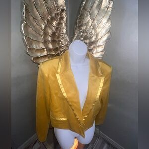 Gorgeous cropped tuxedo jacket with shoulder pads in a vibrant color. Makes a statement.