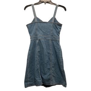 Details: 7 For All Mankind Double Bow Tie Denim Mini Dress in Bright Blue Jay. Soft Italian denim. Stretchy. Light blue wash. V neckline. Double bow accents. Button front closure. Women’s size extra small. Has one tag attached. Never worn
