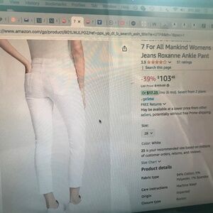 NWT 7 for All Mankind Roxanne Ankle jeans