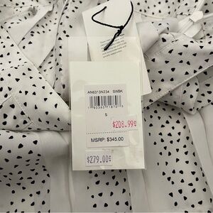 NWT 7 for all Mankind Silk Pleated White and Black Polka Dot Skirt Size Small