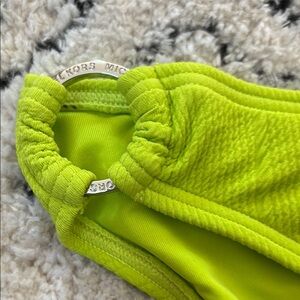 Dive into style with this vibrant green bikini from MICHAEL Michael Kors. Featuring a chic classic bikini cut bottom, this swimwear is perfect for making a splash. Crafted from a smooth, slightly shiny fabric, it offers both comfort and elegance for your beach or poolside adventures.