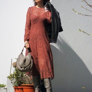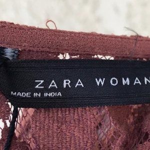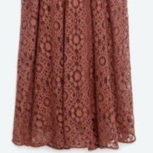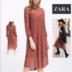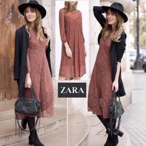 NWT $70 ZARA Women XS Terracotta Lace Overlay Cami Midi Dress Bohemian Elegant