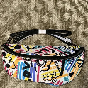 NWT $78 BRIGHTON GRAFFITI LOVE CROSSBODY ZIP BELT BAG TOM CLANCEY DESIGNER