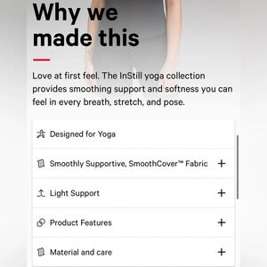 Love at first feel. The InStill yoga collection provides smoothing support and softness you can feel in every breath, stretch, and pose.