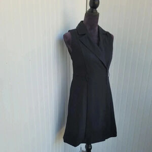NWT $79 Banana Republic Dress Womens Black Faux Wrap Up Collared Work Petite 2P