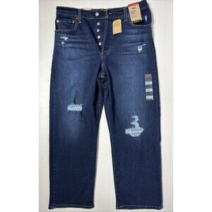 NWT $79.50 Levi's Ribcage Straight Ankle Distressed Dark Wash Jeans Women 32x27