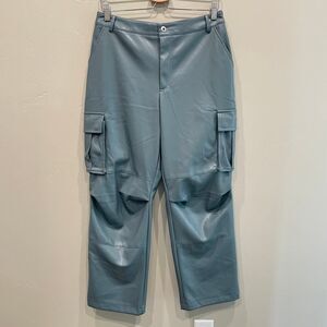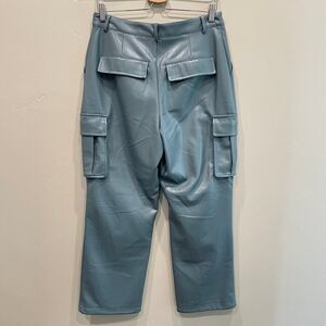 7 For All Mankind Faux Leather Blue Vegan High Waisted Straight Leg Cargo Pants Women’s