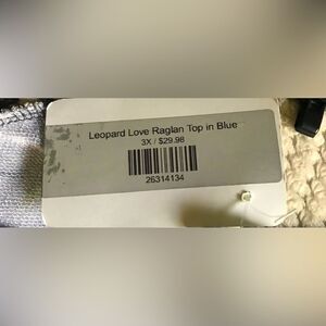NWT … 7TH RAY “Size: 3X” Leopard Love Raglan Top In Blue