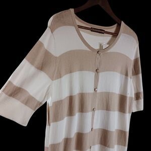 NWT 7th Avenue Design Studio New York White Tan Striped Short Sleeve Sweater XL