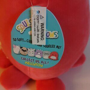 Super sweet, 8" collectible Squismallows Veronica the octopus plushie in bright red, with cute white iridescent sequin belly. This awesome collectible Squishmallow stuffed animal is in perfect new with tags condition. A great Easter or Spring birthday gift, or add it to your collection!