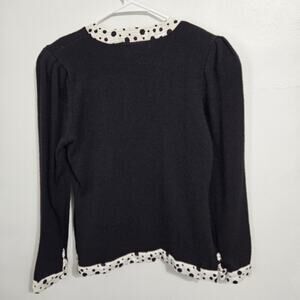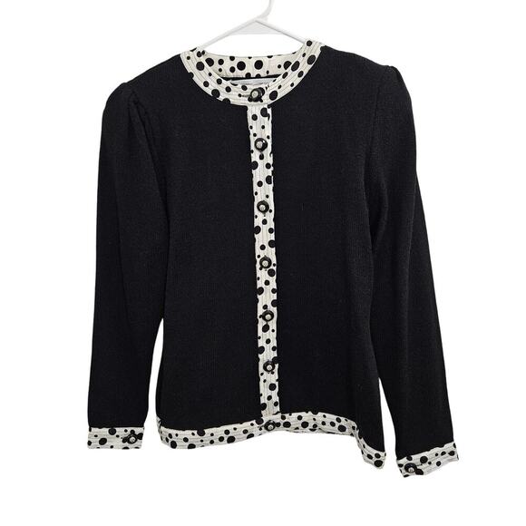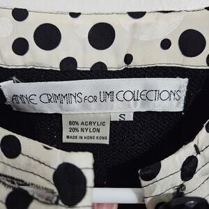 NWT 80s Vintage Anne Crimmins for Umi Black Polka Dot Trim Sweater Blazer Size S