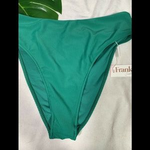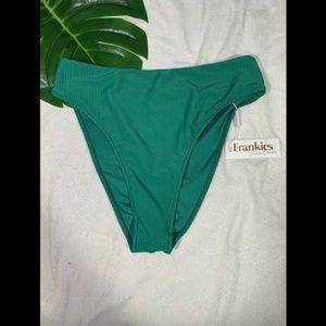 NWT $85 Frankies Bikinis Jenna Ribbed Bikini Bottoms Emerald [ SZ XL ]