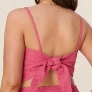NWT $88 ANDIE The Santiago eyelet cropped halter top in rosette pink