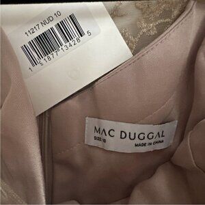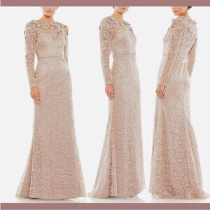 NWT $898 Mac Duggal [ 10 ] Long Sleeve High Neck Embroidered Gown Nude #Q673