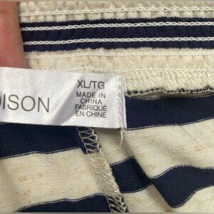 NWT 89th & Madison Navy/Cream Women's Striped Elastic Waist Midi Skirt Size XL